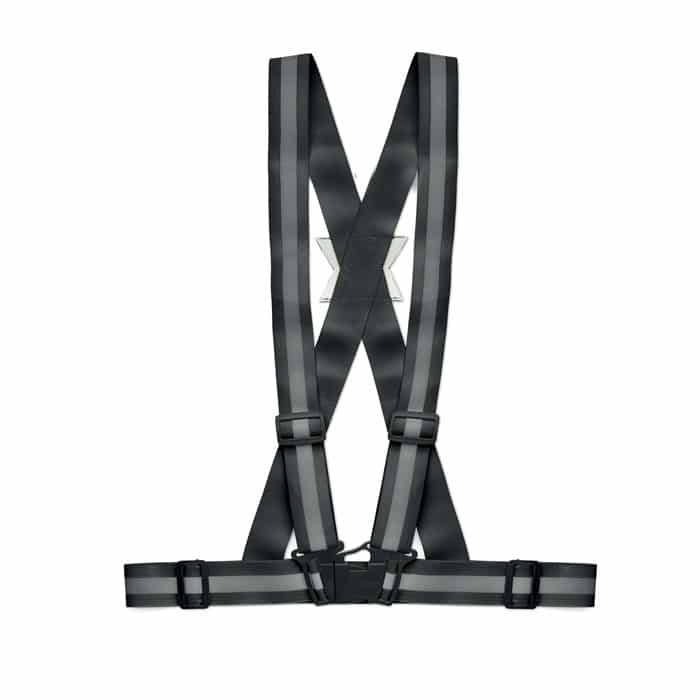 Adjustable 360°reflective body belt with silver stripes. For promotional use only.