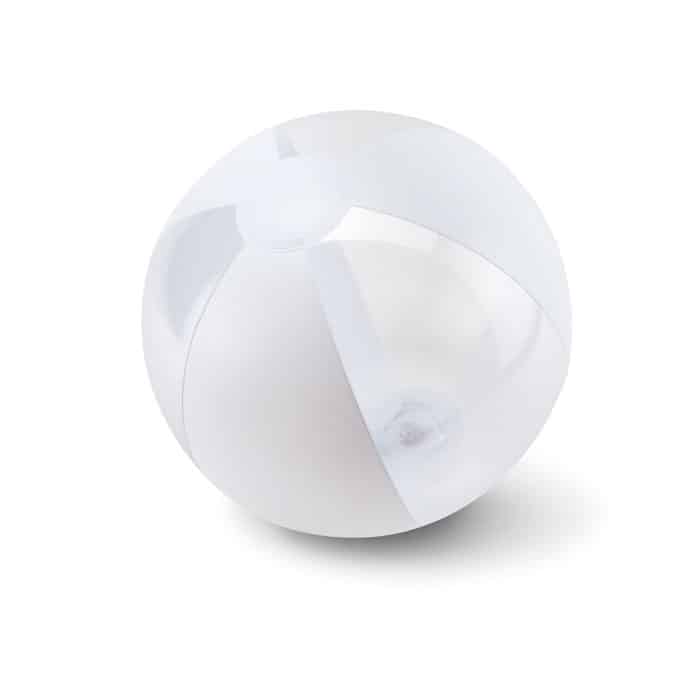 Inflatable beach ball with transparent and solid panels. Inflated: Ø24cm