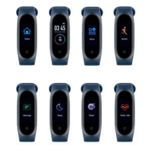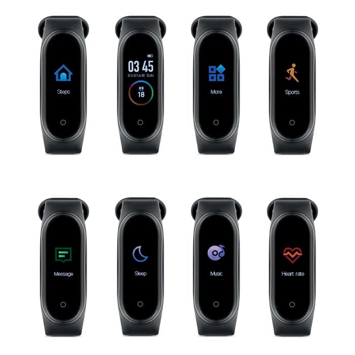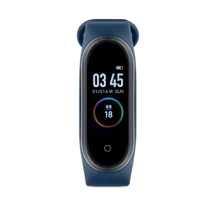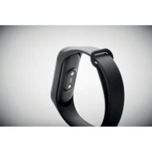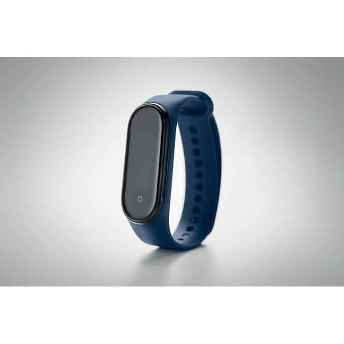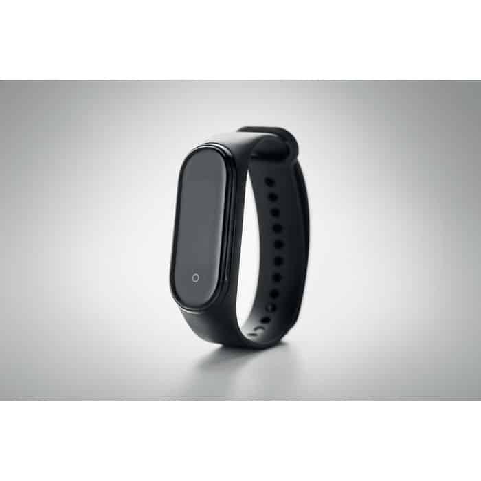 5.0 wireless smart health watch in ABS with silicone strap. 0.96 inch touch LCD display. Rechargeable Li-Pol 90 mAh battery. Requires a free app (HryFine available in both iOS and Android).