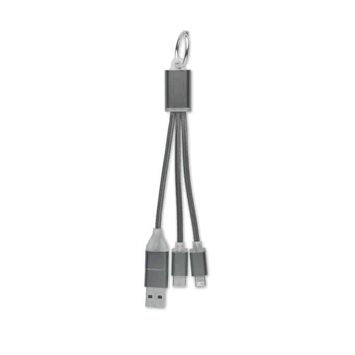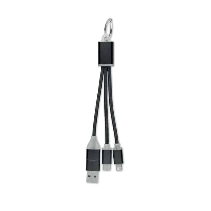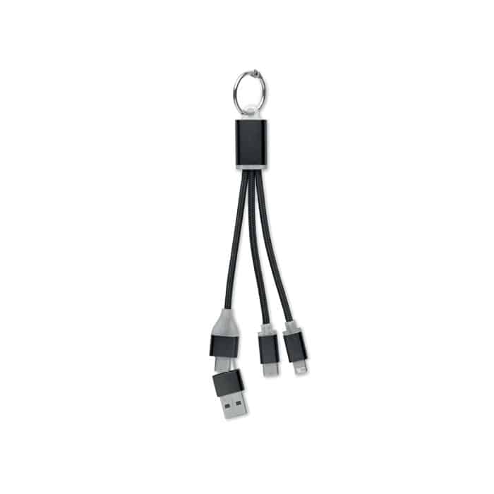 Key ring with charging cable with input: 2-in-1 type-C & type-A and micro-B (2 in 1 pin) and Type C output.