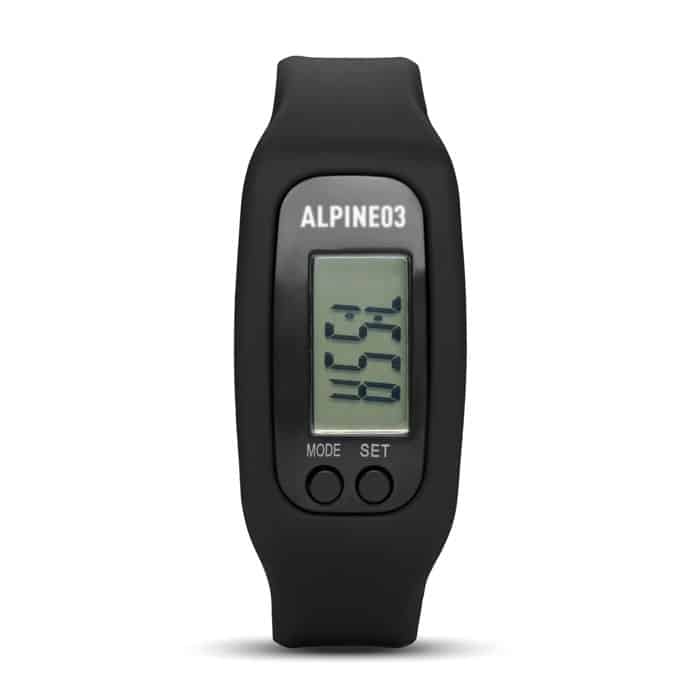 Pedometer bracelet. Includes step, distance, time and calorie counter. 1 AG10 cell battery included.