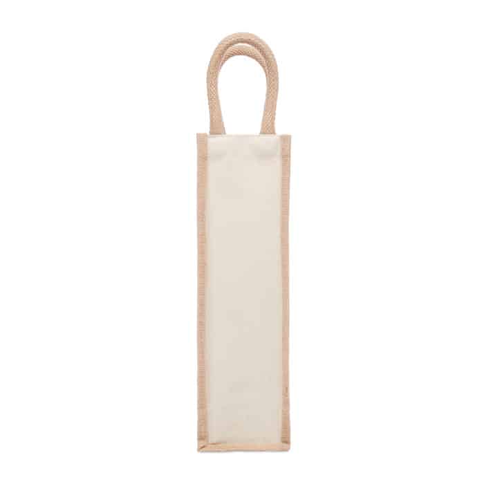 Wine gift bag for one bottle in jute and 320 gr/m² canvas. Surprise someone special with a delicious wine. Presented in this high quality gift bag, your gift wil definitely be appreciated. Wine bottle is not included.