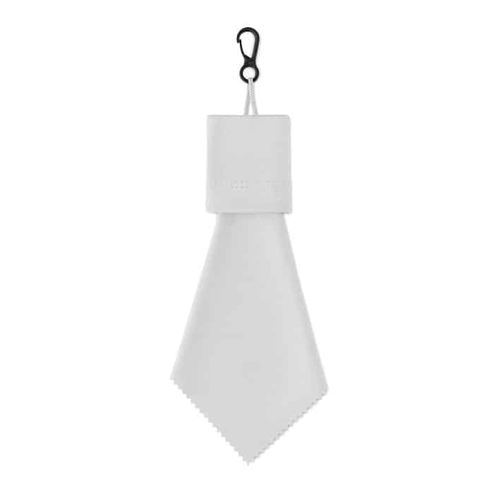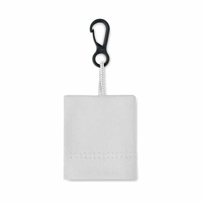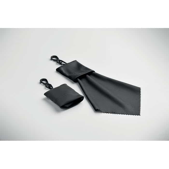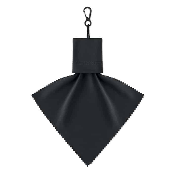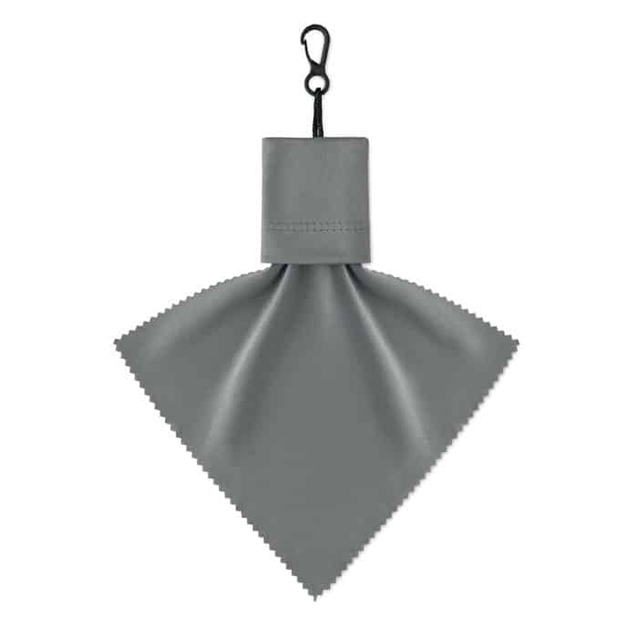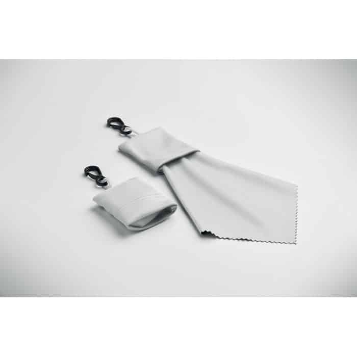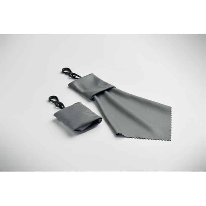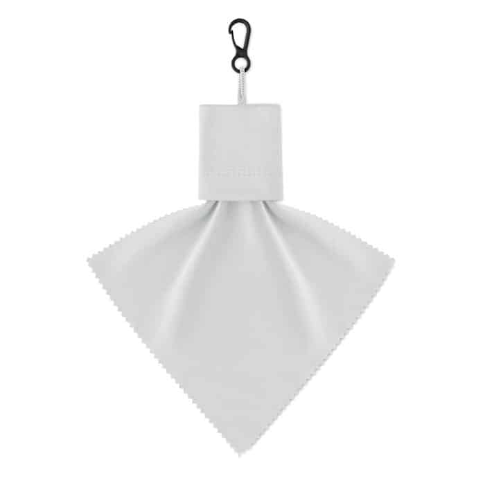 RPET cleaning cloth with self material pouch with PP plastic hanging hook.
