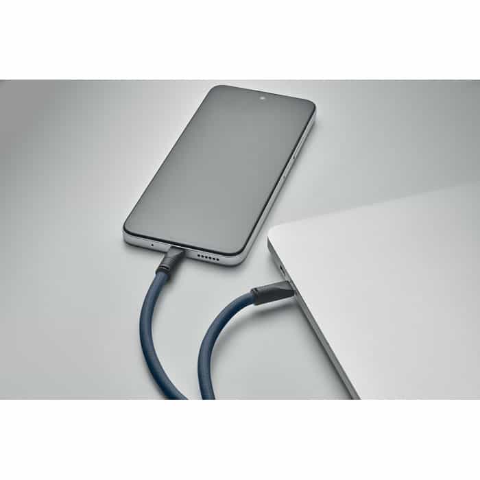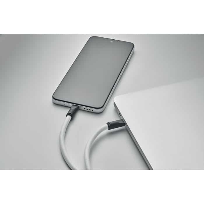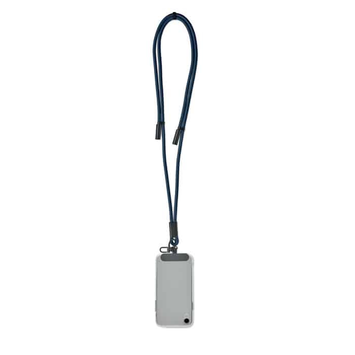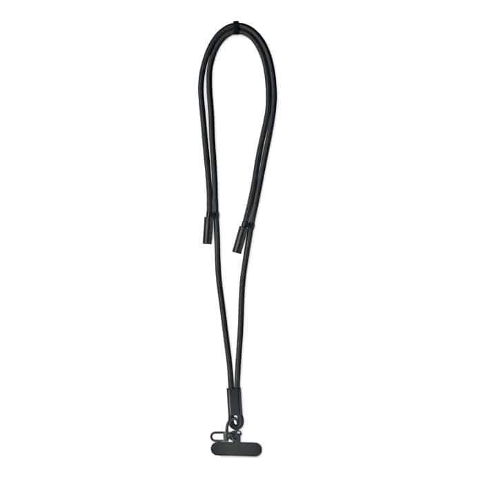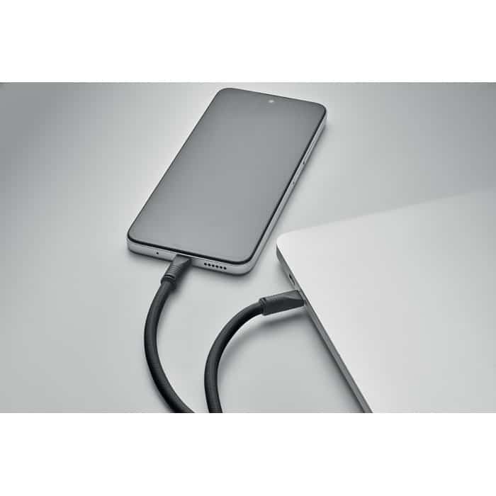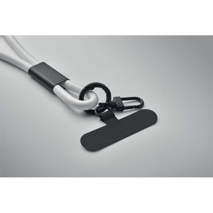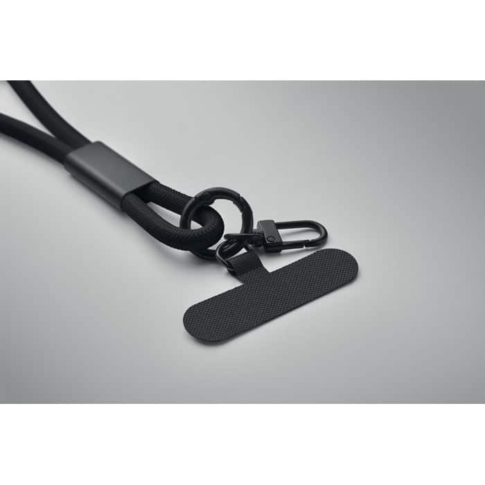 Cord lanyard with 60W charging and data transfer cable type-C to type-C in RPET with phone cord holder and key clip.