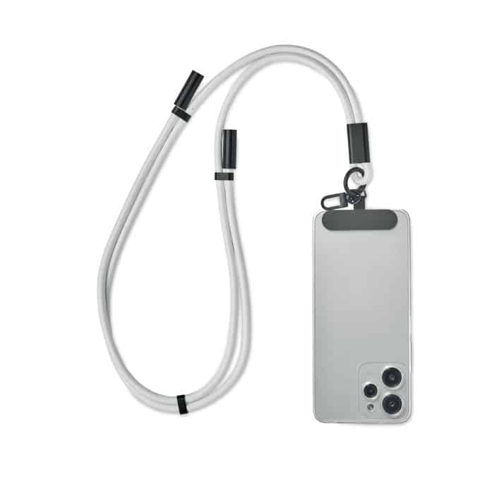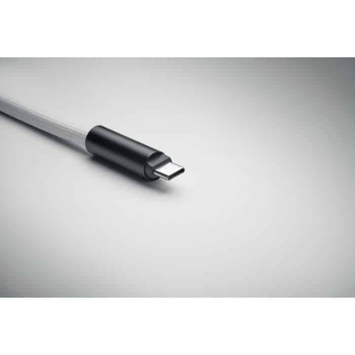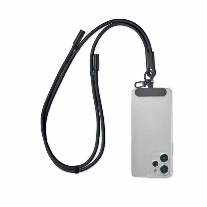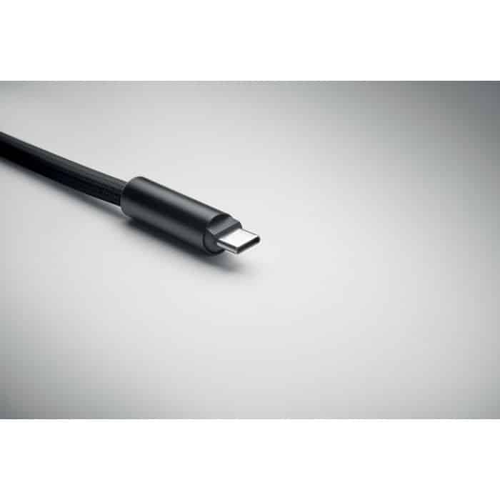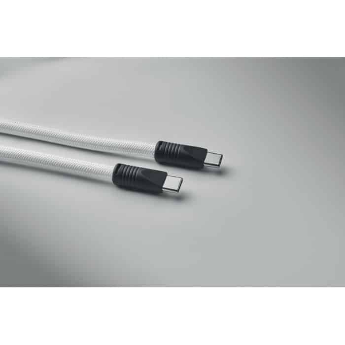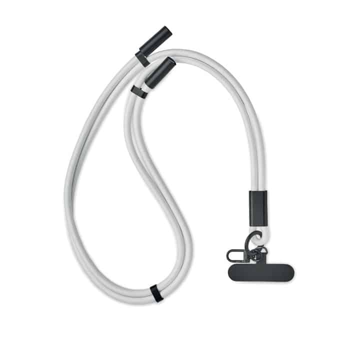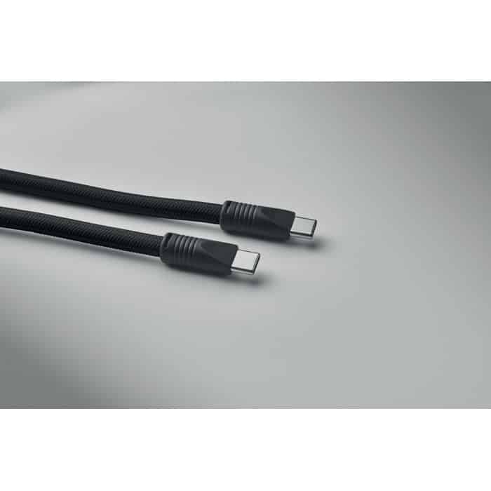 Cord lanyard with 60W charging and data transfer cable type-C to type-C in RPET with phone cord holder and key clip.