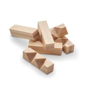 Bamboo brain teaser puzzle in star shape. Presented in a recycled paper box. Bamboo is a natural product, there may be slight variations in colour and size per item, which can affect the final decoration outcome.