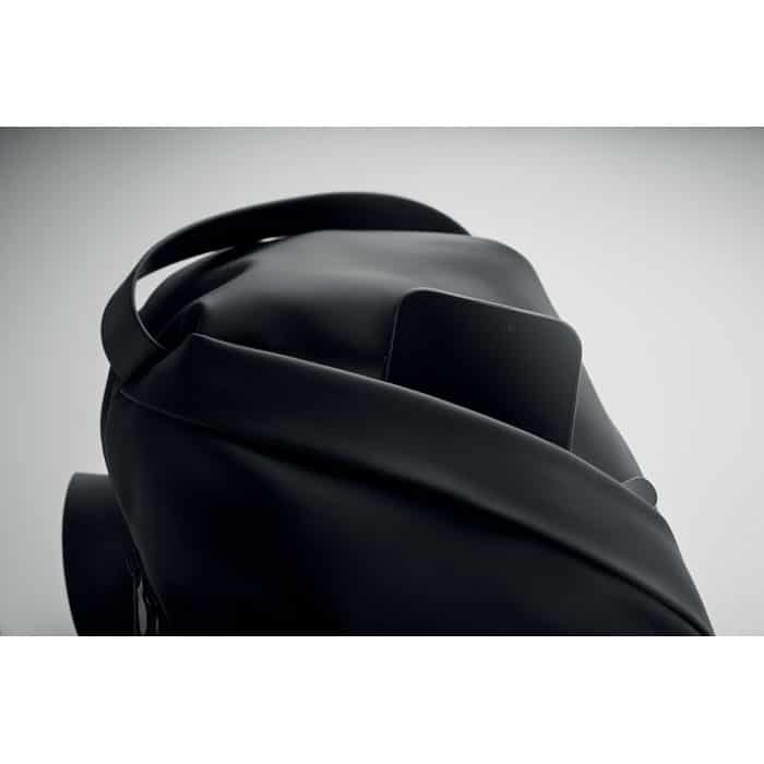 Cross body bag in soft PU with padded back with 210D RPET lining. One large main compartment with zippered front pocket.