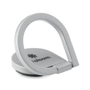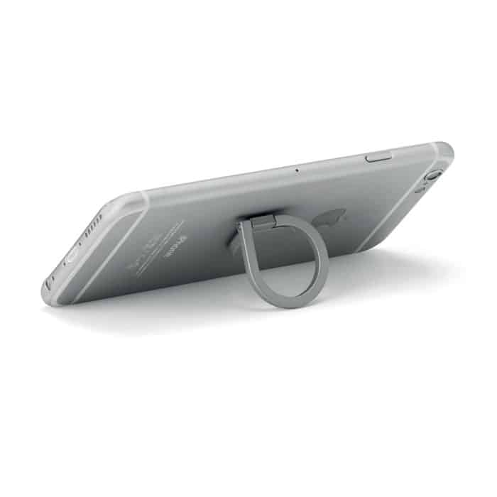 Phone holder with ring in matt zinc alloy. 3M sticker on back.