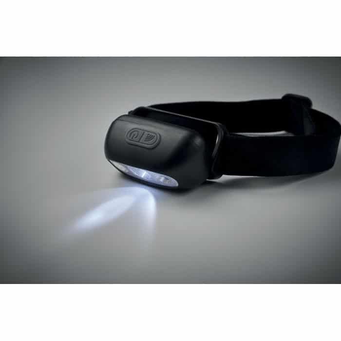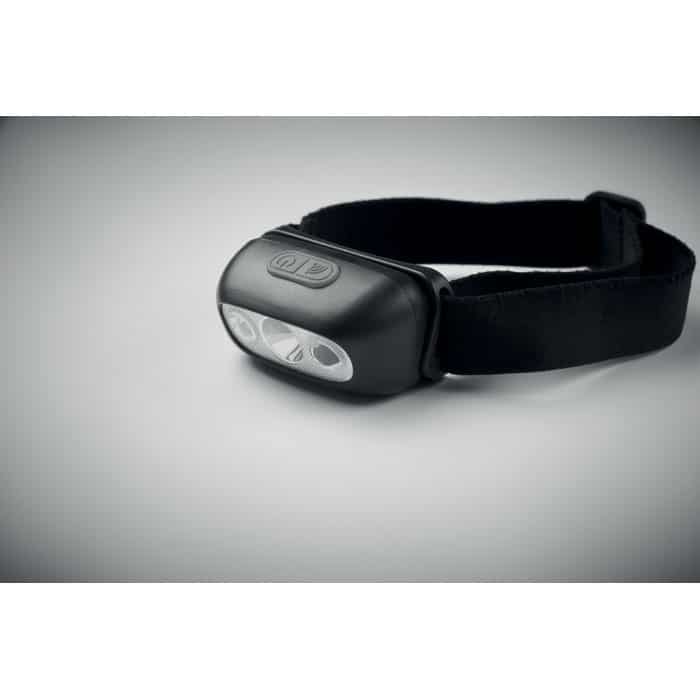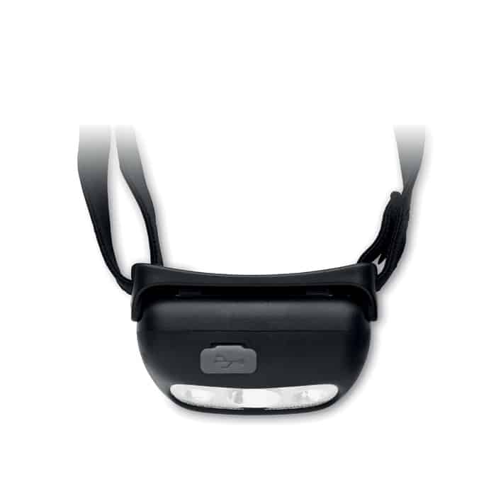 Rechargeable and adjustable head torch with 1 LED light (50 lumen) and 3 lightning modes. Built in 400 mAh rechargeable battery and including charging cable.