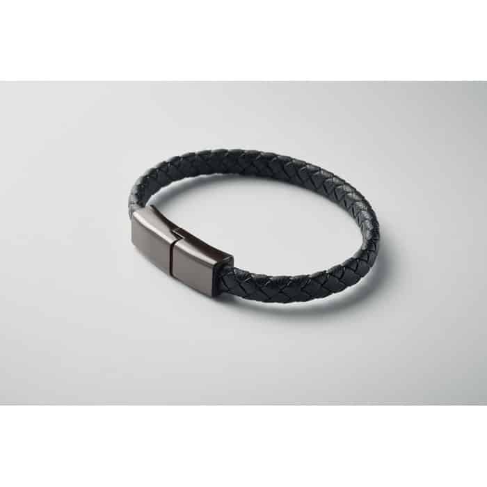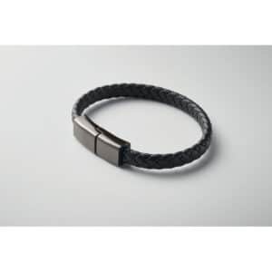 Bracelet with charging cable 60W type-C to type-C in PU with zinc alloy braided detail. Wrist circumference approx.: 21 cm.