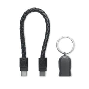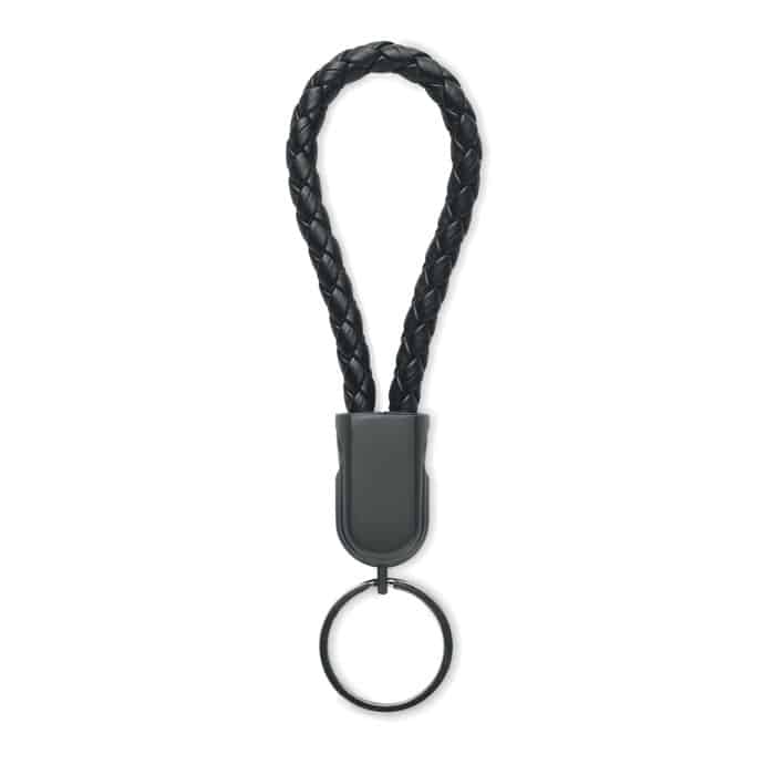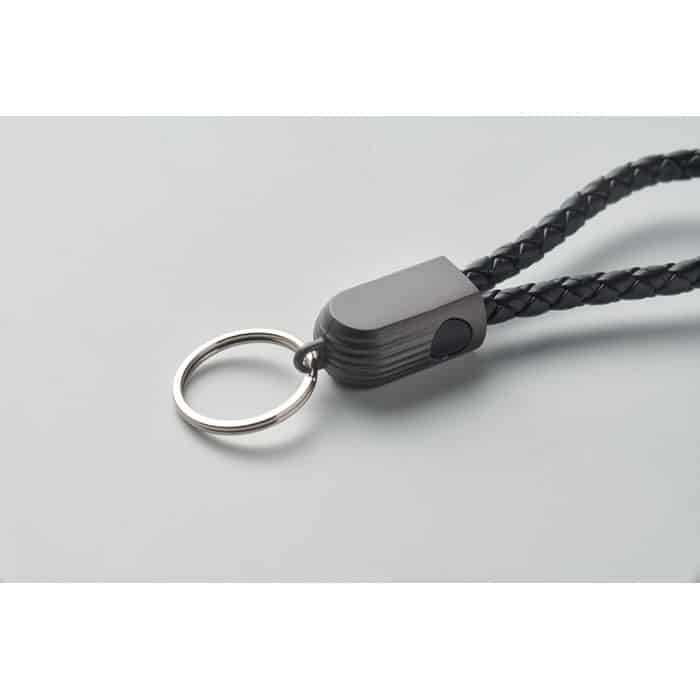 Key ring loop with charging cable 60W type-C to type-C in PU with zinc alloy braided detail.