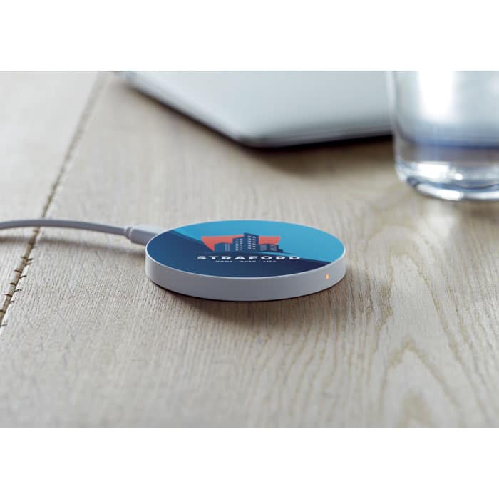 Wireless charger. Connect device to your computer, place smartphone on device to commence charging. Output: DC5V/1A (5W).