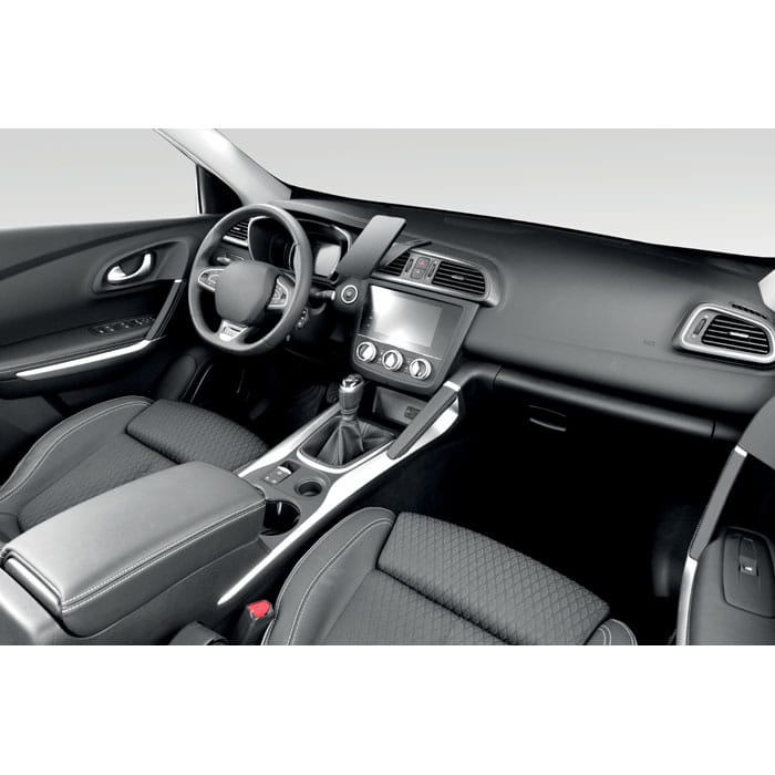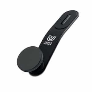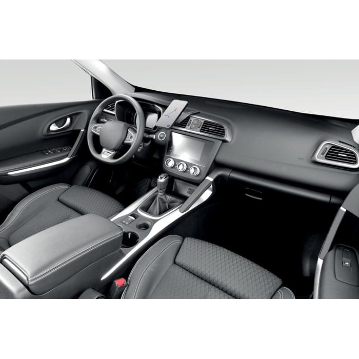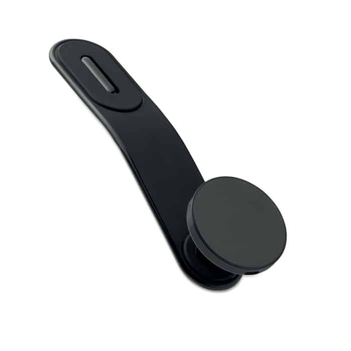 Flexible car mount magnetic wireless charger 15W with phone holder and hook and loop mount. Compatible with iPhone® 12 and newer. Including additional magnetic metal ring to support charging of other non-magnetic wireless chargeable phones.