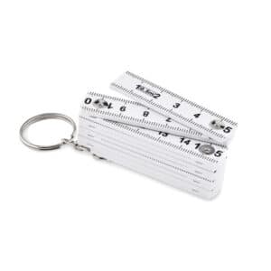 Carpenter’s folding ruler key ring in ABS. Length: 50 cm.