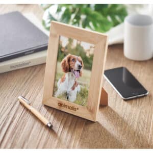 Bamboo photo frame. Frame can be in hanging, vertical or horizontal position. Picture size: 15 x 10 cm. Bamboo is a natural product, there may be slight variations in colour and size per item, which can affect the final decoration outcome.
