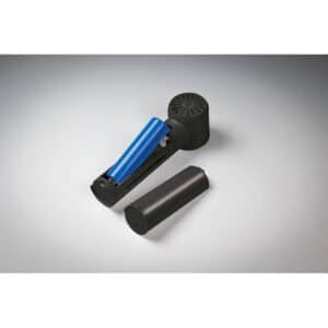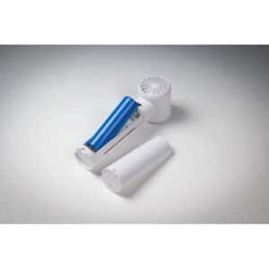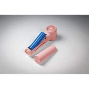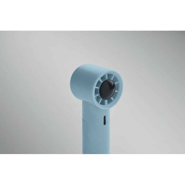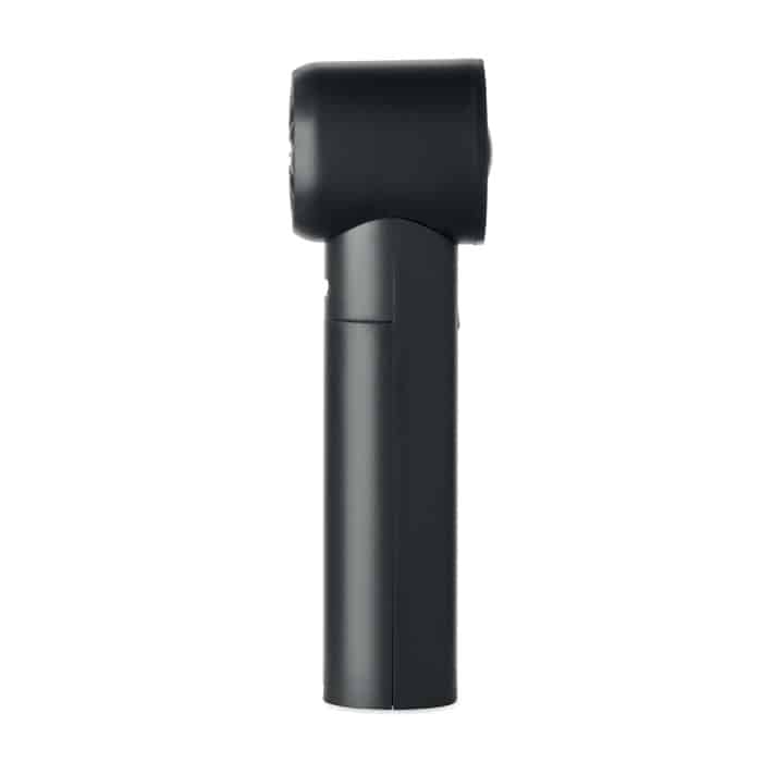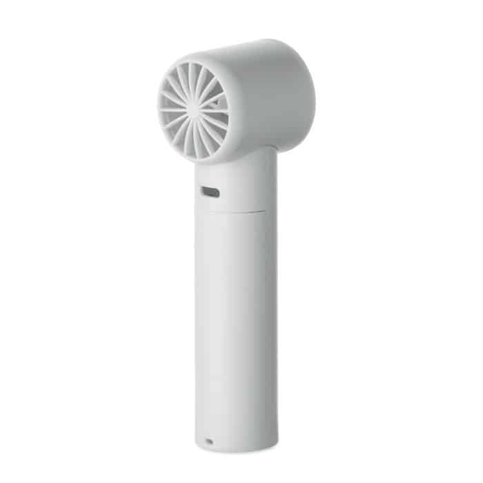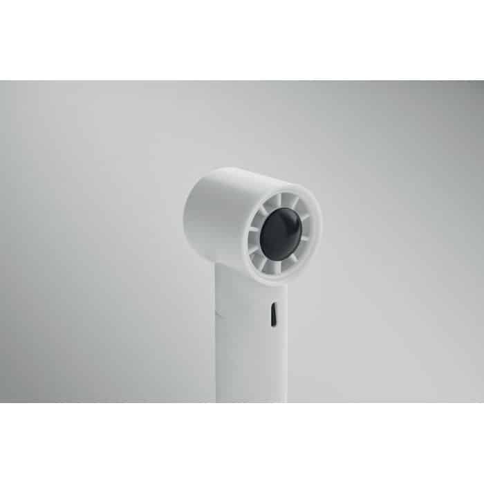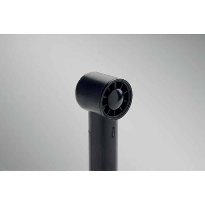 Mini handheld fan in ABS with screen display and 5 speed settings. Includes replaceable 2600mAh rechargeable lithium battery.