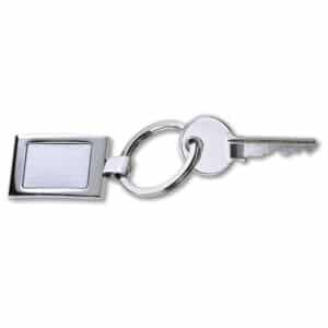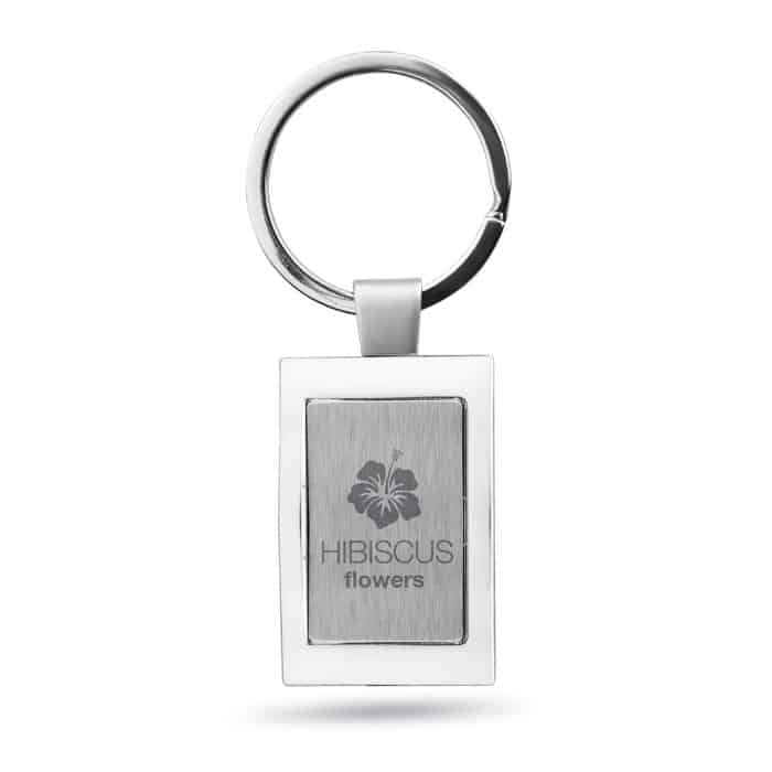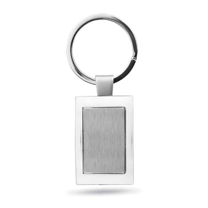 Metal rectangular key ring. Individually packed in a gift box.