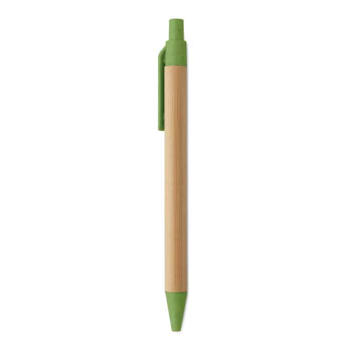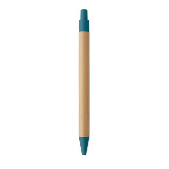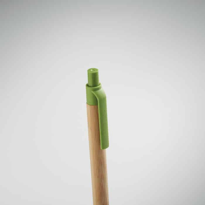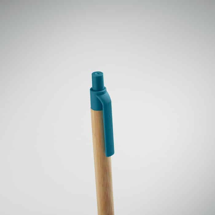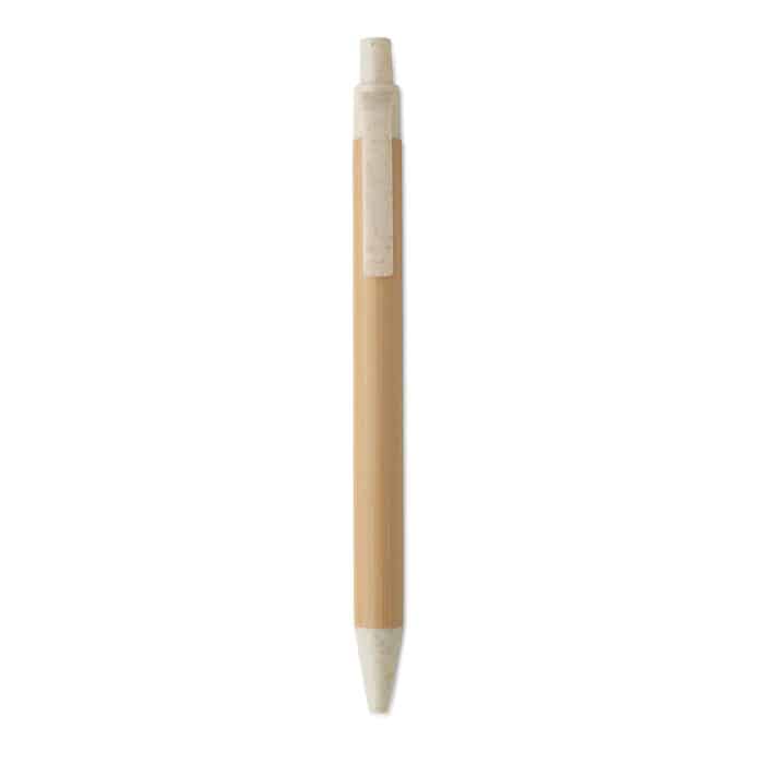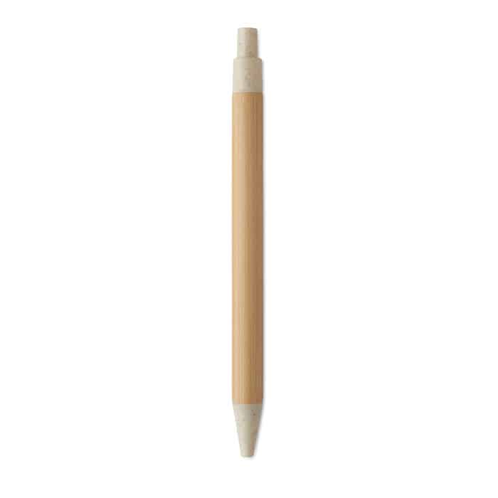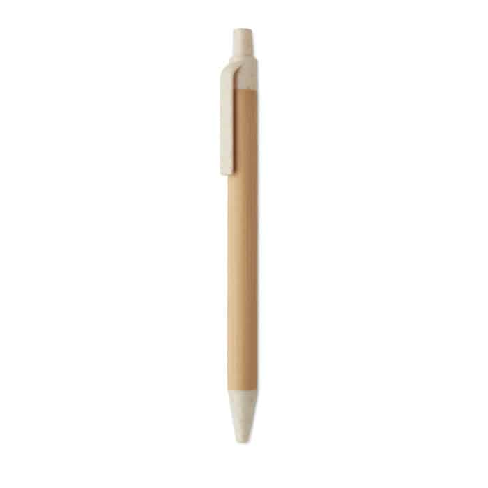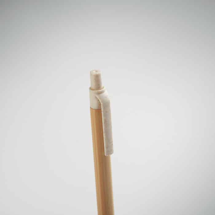Push button ball pen with bamboo barrel and wheat straw (50%) and ABS plastic (50%) fittings. Blue ink. FSC 100% | N5.7 | FSC-C213206