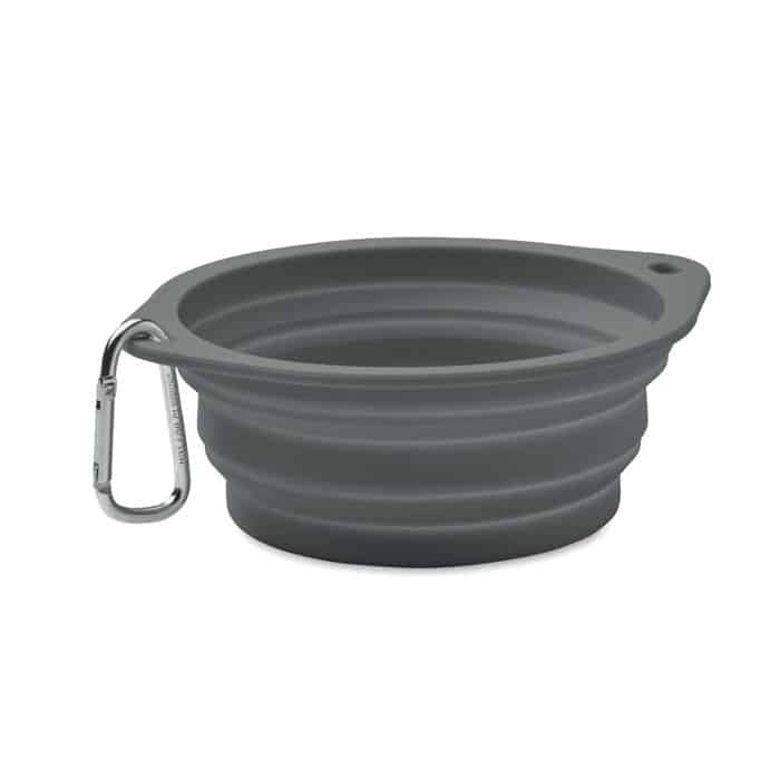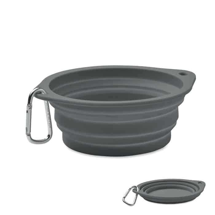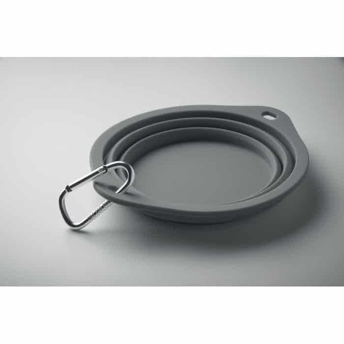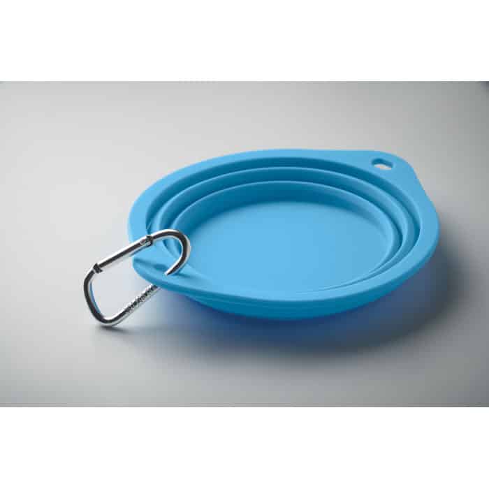 Collapsible portable silicone single drinking or food pet bowl with carabiner. Capacity: 350ml.