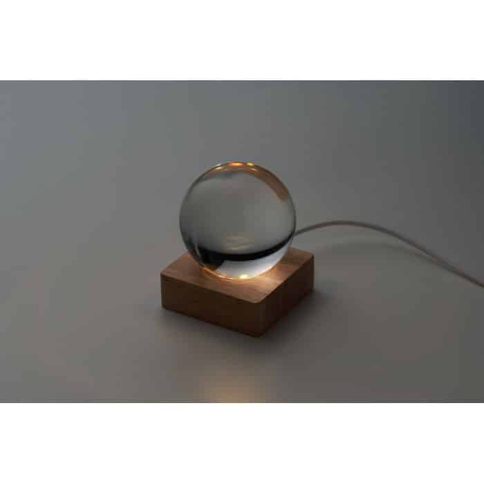 Glass ball with LED light (100 lumens) on a rubber wood base. Includes a USB charging cable (90 cm). FSC 100% | W18.8 | FSC-C213206