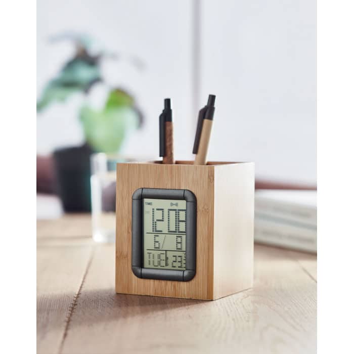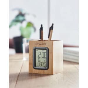Bamboo pen holder and LCD clock