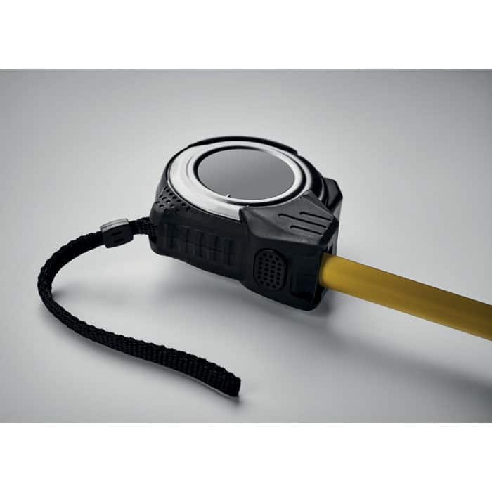 5M measuring tape with shockproof rubber casing and AutoStop function. Includes silver metal clip on the back and wrist strap. A must-have tool for the DIY amateur. A simple tool to measure everything you need.