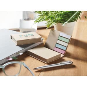 3-piece recycled paper sticky note memo pad. Large and medium sticky notes pads and 5 assorted colours page markers. Made in EU.