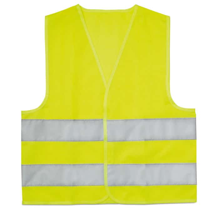 Child high visibility vest with 2 horizontal reflective bands. 100% polyester. EN17353.