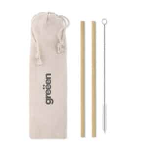 Set of 2 reusable bamboo straws , stainless steel-nylon cleaning brush in cotton pouch. Since bamboo is a natural material the thickness and surface can vary.