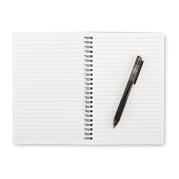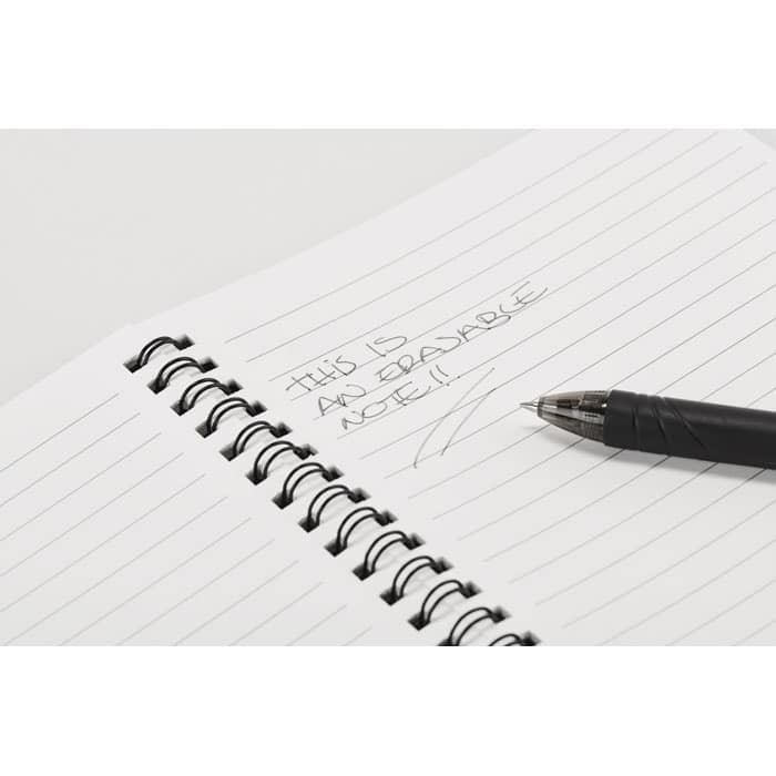 A5 Reusable notebook in PP cover. 36 lined mineral paper pages (18 sheets). Compatible with any document scanning app. Including water- erasable pen and cleaning cloth.