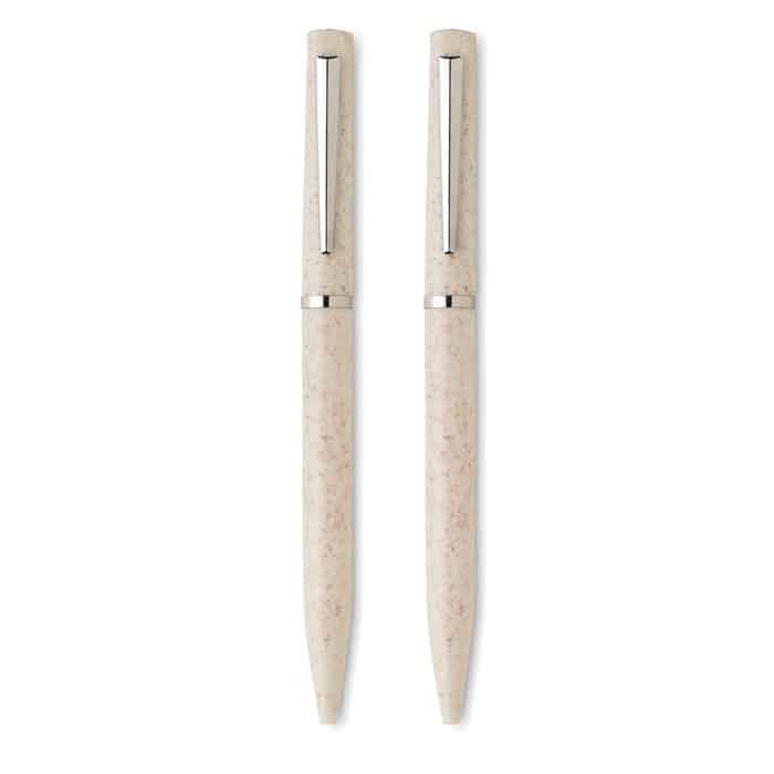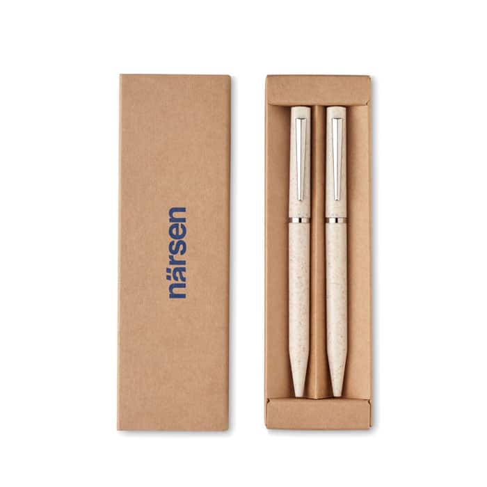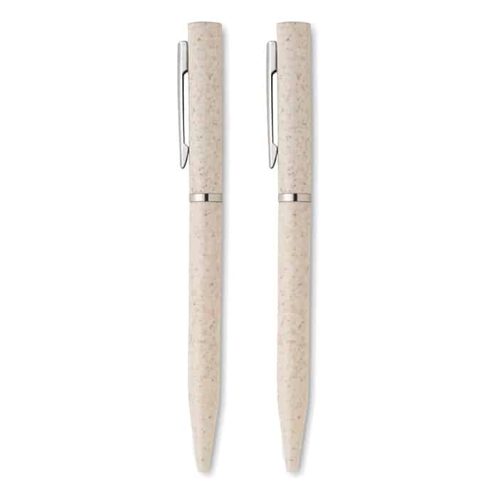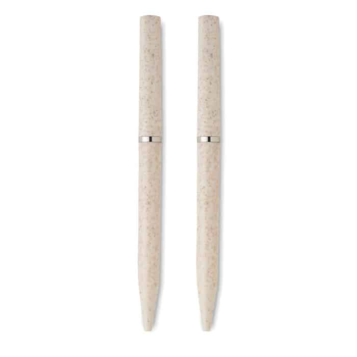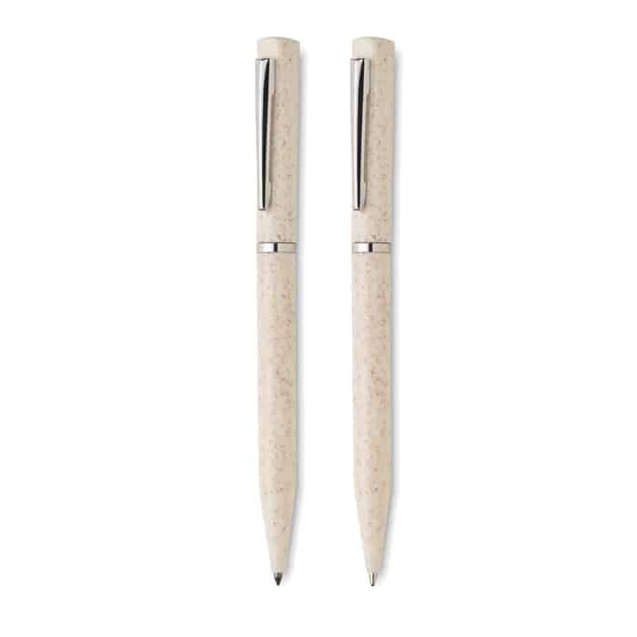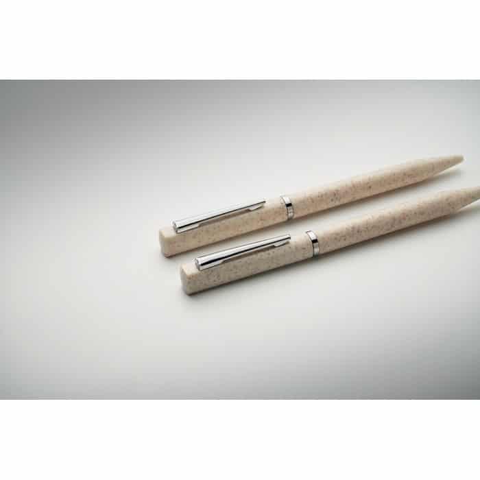 Wheat straw/ABS pen set with 1 twist ball pen blue ink and 1 twist graphite inkless ball pen. Presented in recycled paper box. FSC®-certified | FSC MIX, P5.1, FSC-C213206