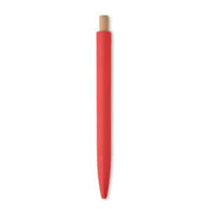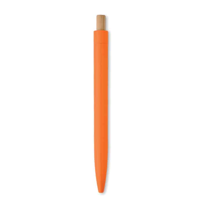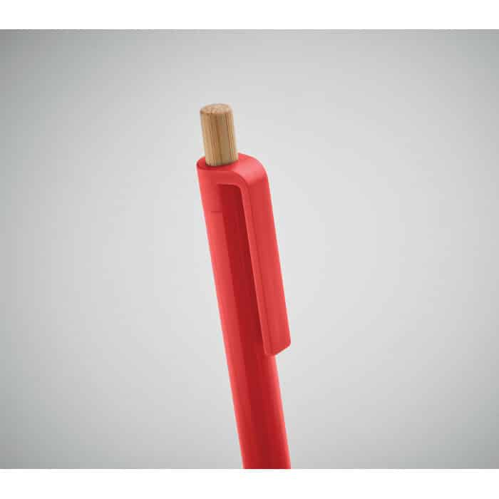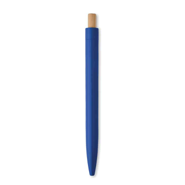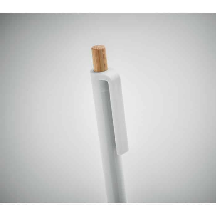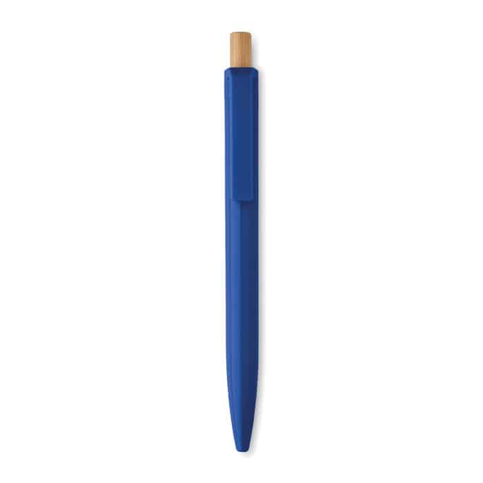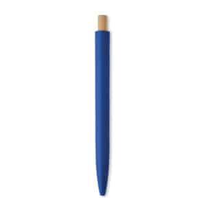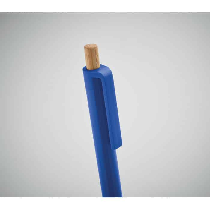 Ball pen in recycled ABS with bamboo push button. Blue ink.