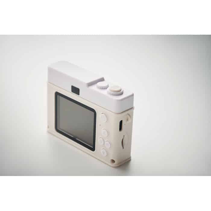 Compact digital camera with LCD monitor. Single Lens with F2.4 lens, 2.0” LCD, photo resolution up to 12MP and FHD video. Includes USB-C cable and built-in 300mAh battery. SD card not included