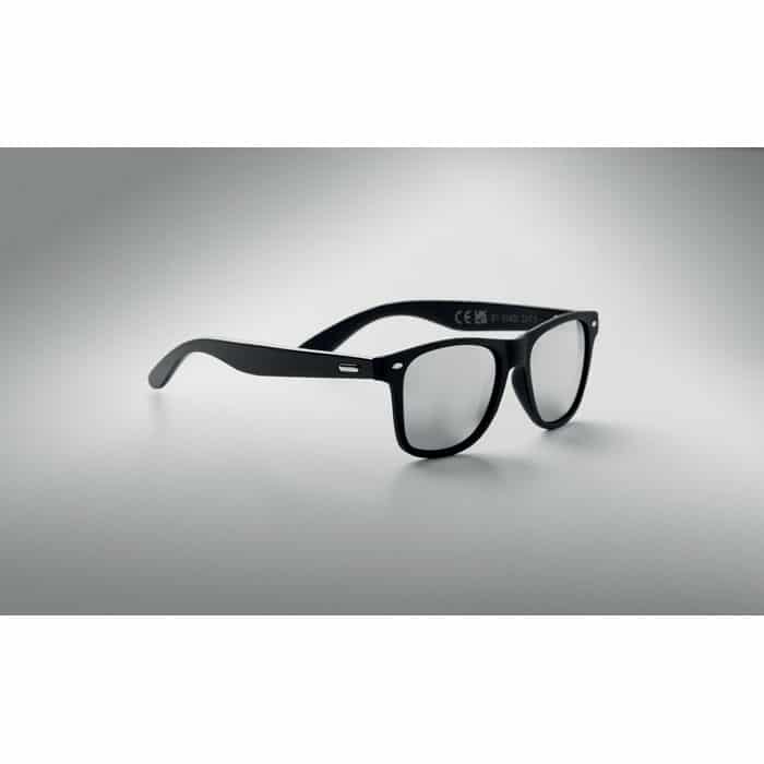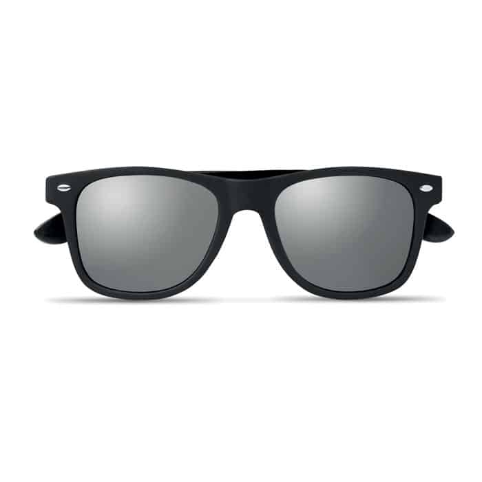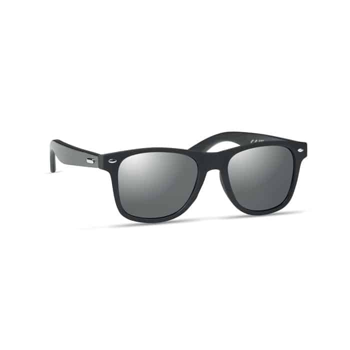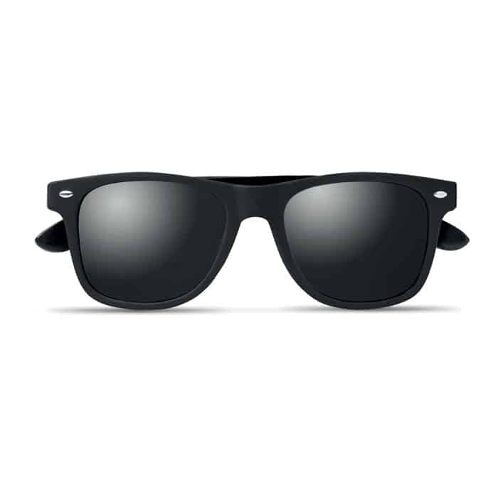 Sunglasses with black coated bamboo arms and all over mirrored lens. A classic sunglasses design made from a sustainable material. Because the bamboo is coated in black it is less noticeable that these glasses are made from wood. They have UV400 protection, so they can be used daily during sunny summer days. Bamboo is a natural product, there may be slight variations in colour and size per item, which can affect the final decoration outcome.