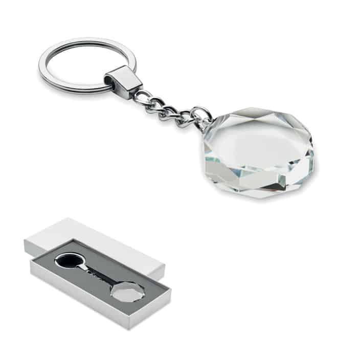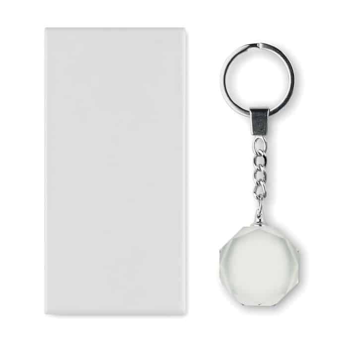 Glass round award key ring. Presented in a gift box.