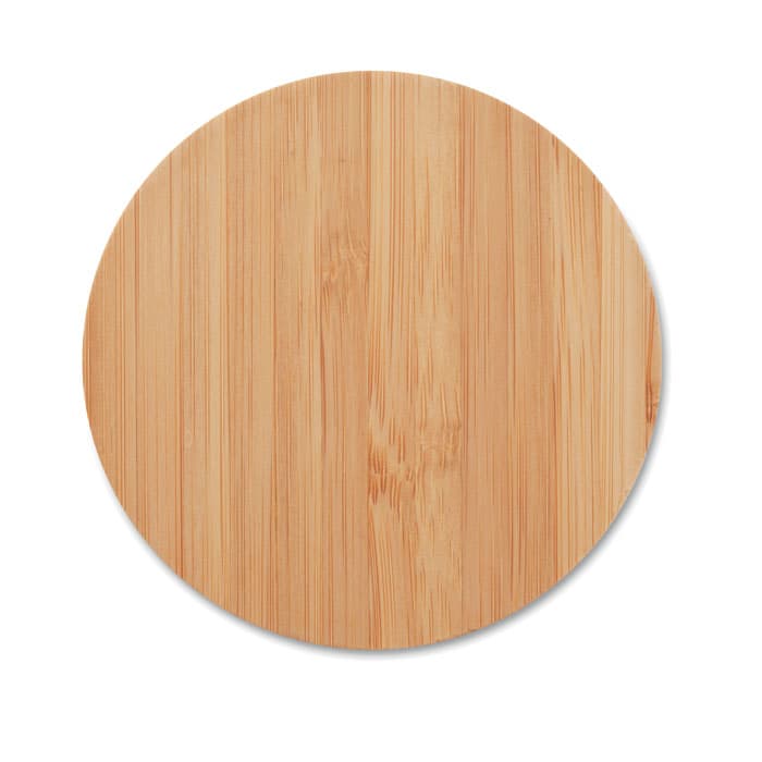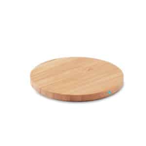 Wireless quick charger in bamboo. Connect device to your computer, place smartphone on it and allow it to charge. Blue light lit when charging. Output: DC 9V/1.67A (15W). Bamboo is a natural product, there may be slight variations in colour and size per i