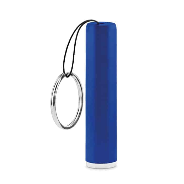 LED bulb torch in ABS with key ring. 3 AG3 batteries included. The barrel includes a LED light to illuminate the engraved logo.