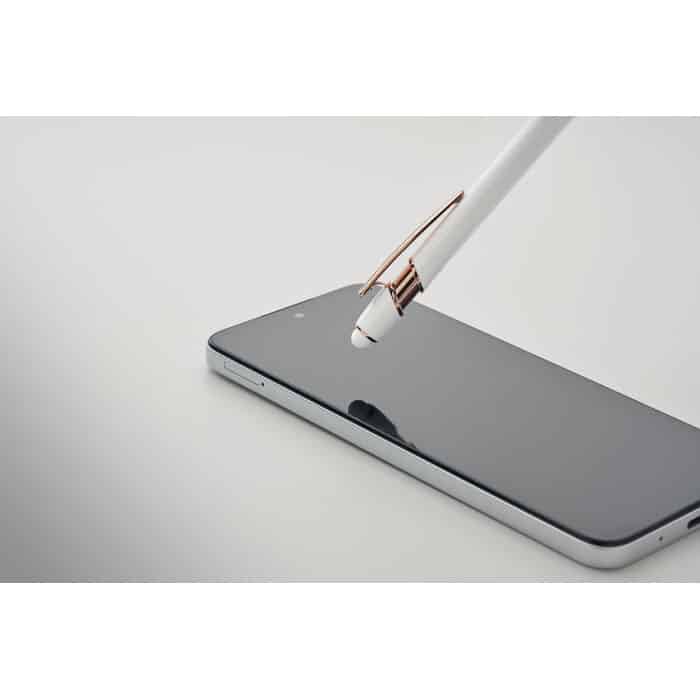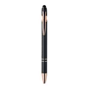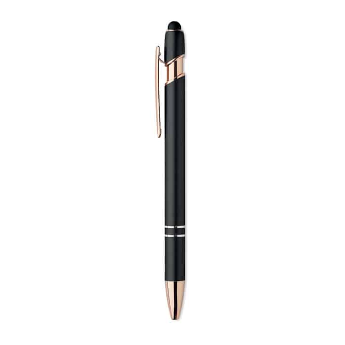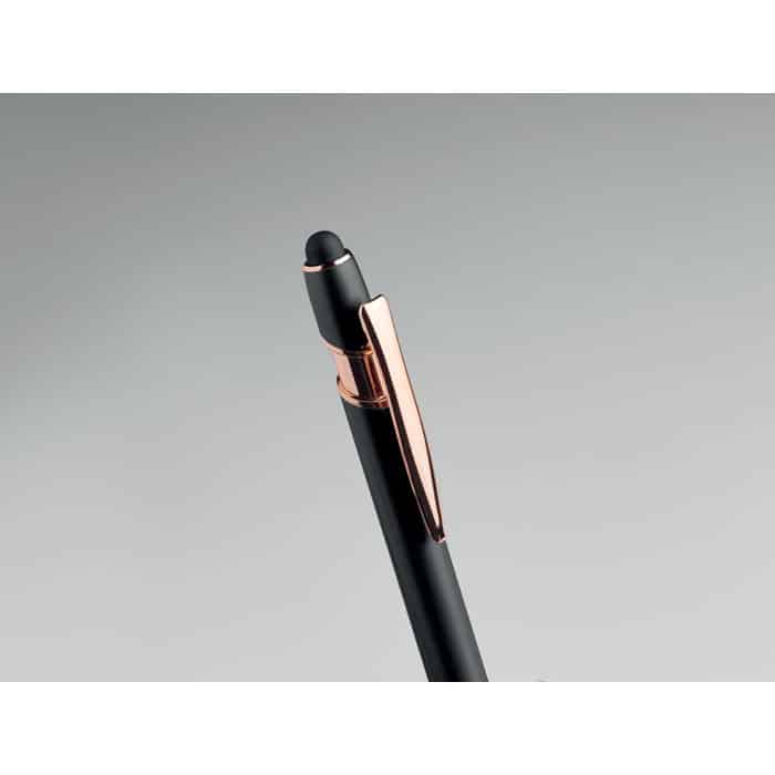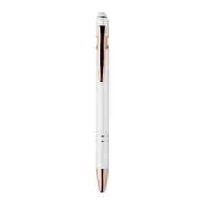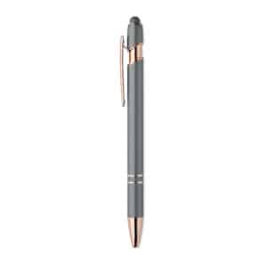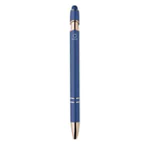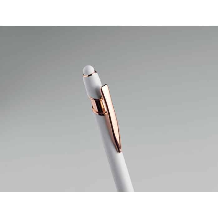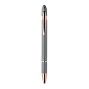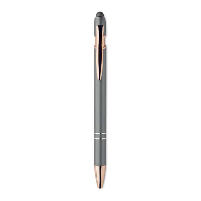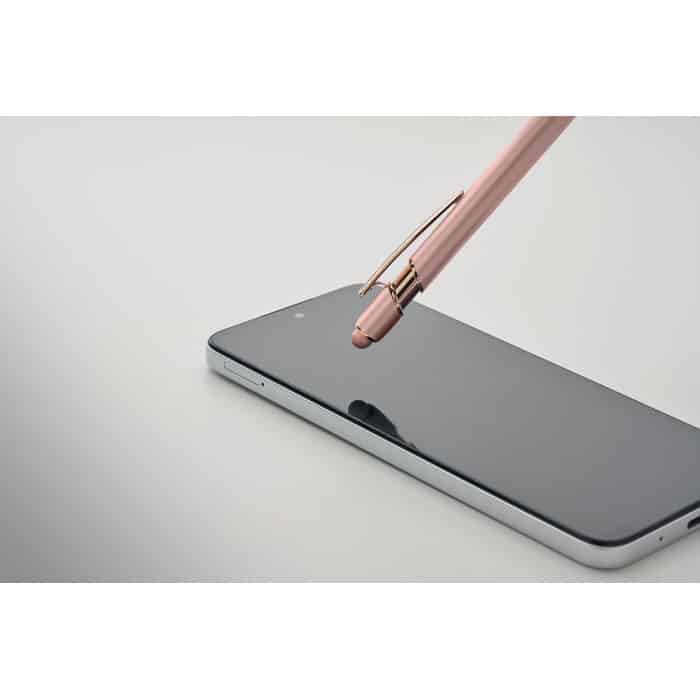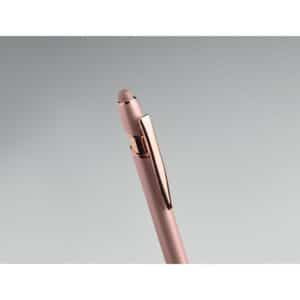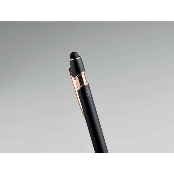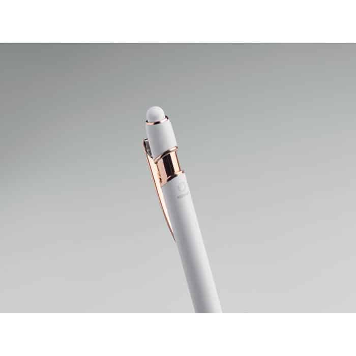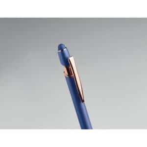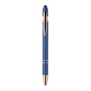 Recycled aluminium stylus push ball pen with rose gold details. Blue ink.