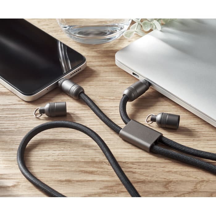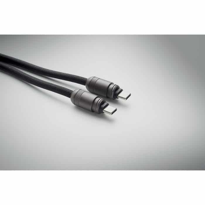 60W lanyard charging and data transfer cable type-C to type-C in RPET with phone cord holder.