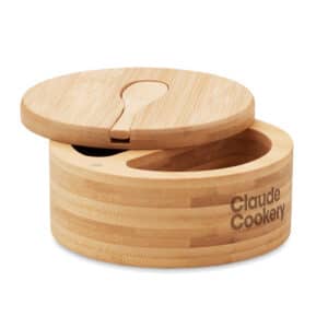 Salt and pepper box in bamboo with built in serving spoon. Two compartments. Twist opening lid. Bamboo is a natural product, there may be slight variations in colour and size per item, which can affect the final decoration outcome.
