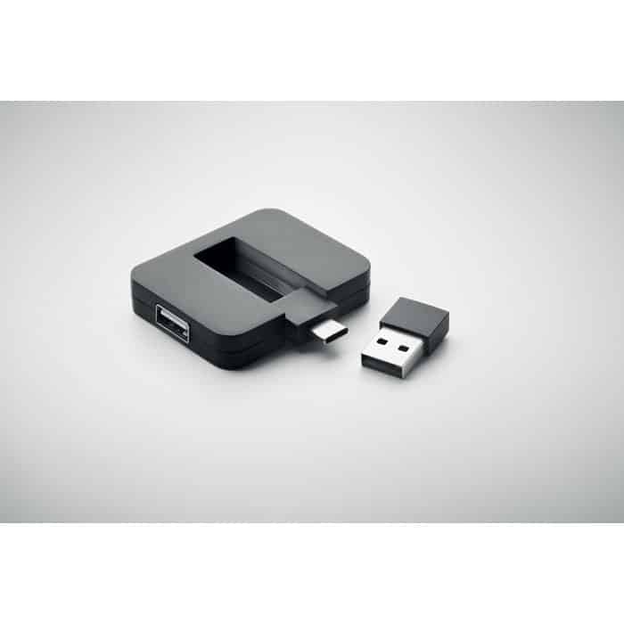 4 port 2.0 USB in ABS. Output: 2 x Type-A and 2 x Type-C. Input: Type-C & Type-A.