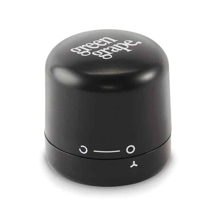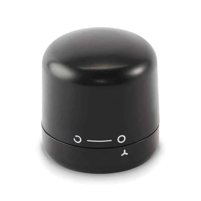 Bottle stopper made of recycled ABS for sparkling wine bottles. Features a turning lock mechanism and leak-free design.