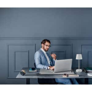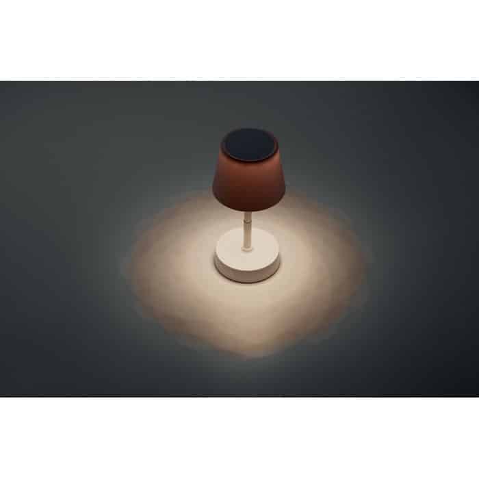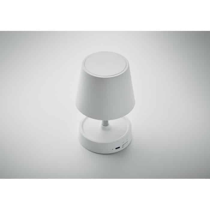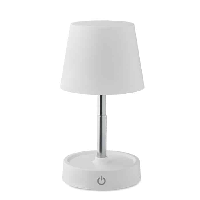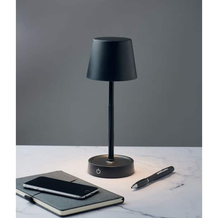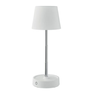 Retractable and rechargeable USB table lamp in ABS. Includes 12 LED lights with adjustable light intensity and stepless dimming. Built-in battery: 1200 mAh (6hr working time after fully charged). Including USB Type-A to Type-C charging cable.