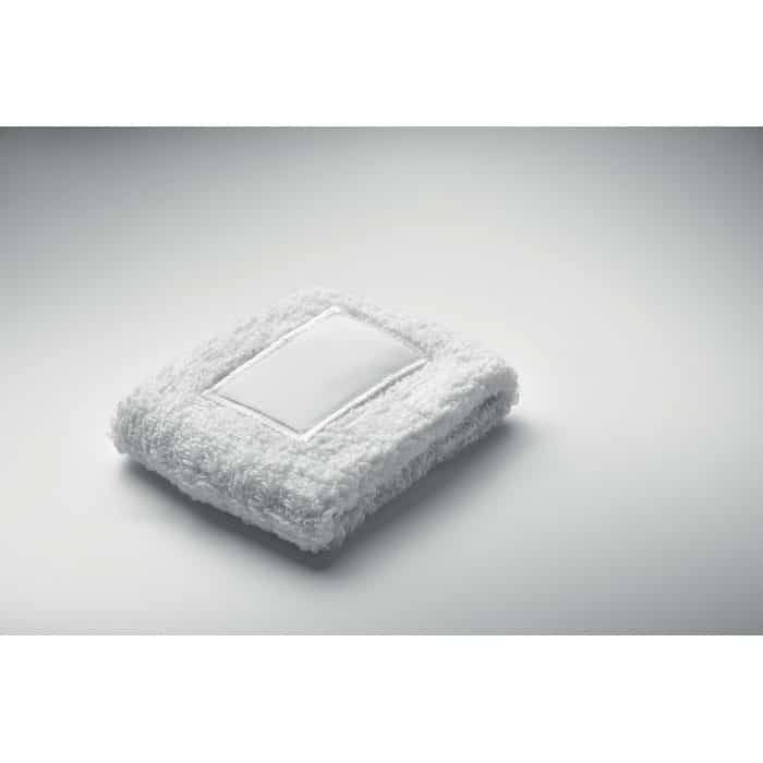 Wristband in polycotton (79% cotton/13% elastane/8%polyester) with cotton patch for printing area.