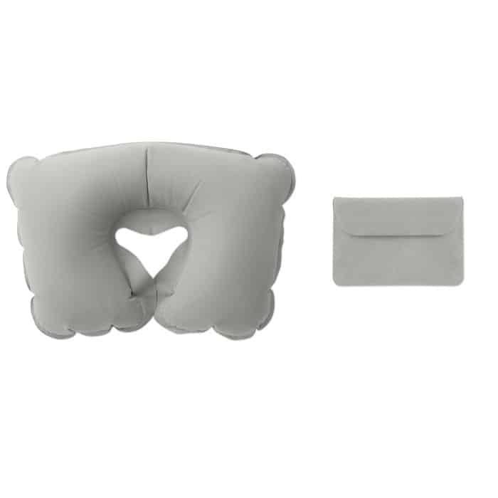 Inflatable travel pillow in velvet pouch. Popular for use in car, train or plane.