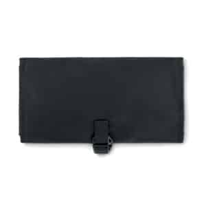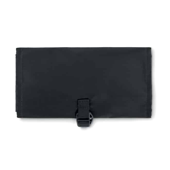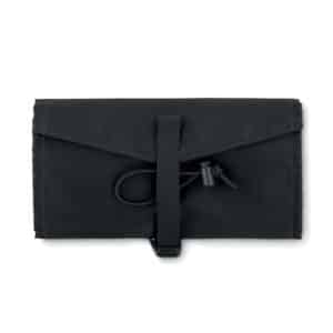 210D RPET cable roll bag organizer. It has a RPET mesh with 3 zippered compartments. This bag can also be used as a cosmetic bag.