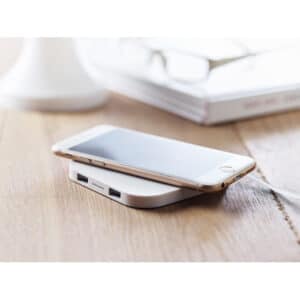 Charging pad with 2 port 2.0 hubs and USB port computer to create wireless charging dock for smartphones. Output: DC 9V/1.67A (15W).
