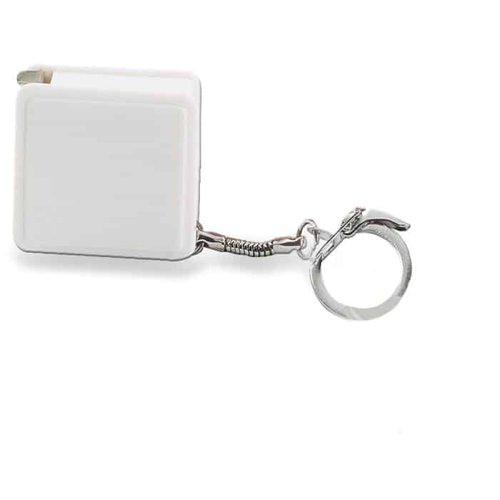 Flexible 1m steel ruler in square shape plastic with keyring.